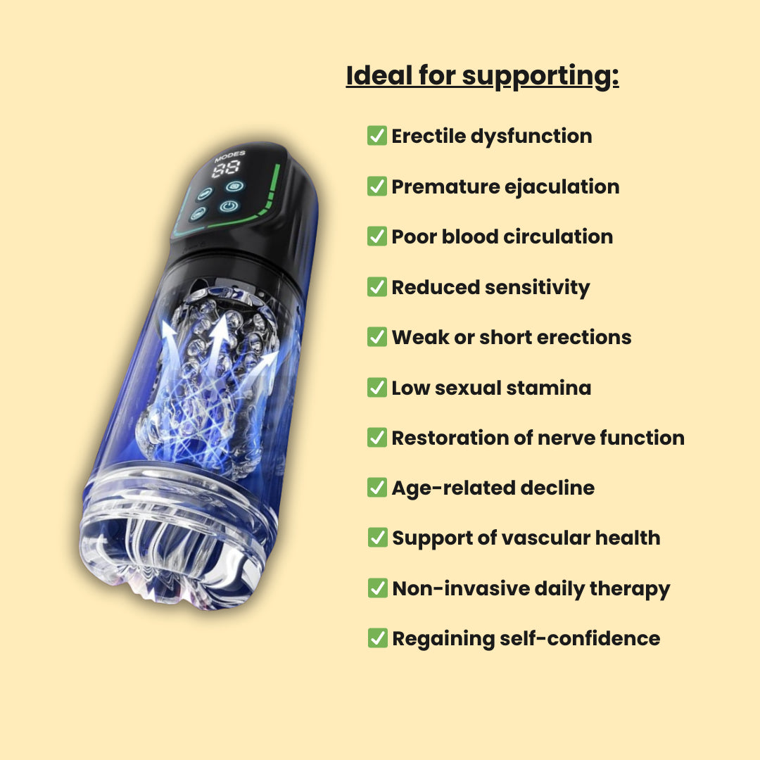 The Starkmann™ Aqua Therapy Pro uses clinically inspired heat and vacuum stimulation to support natural function and promote growth in a gentle, effective way.
