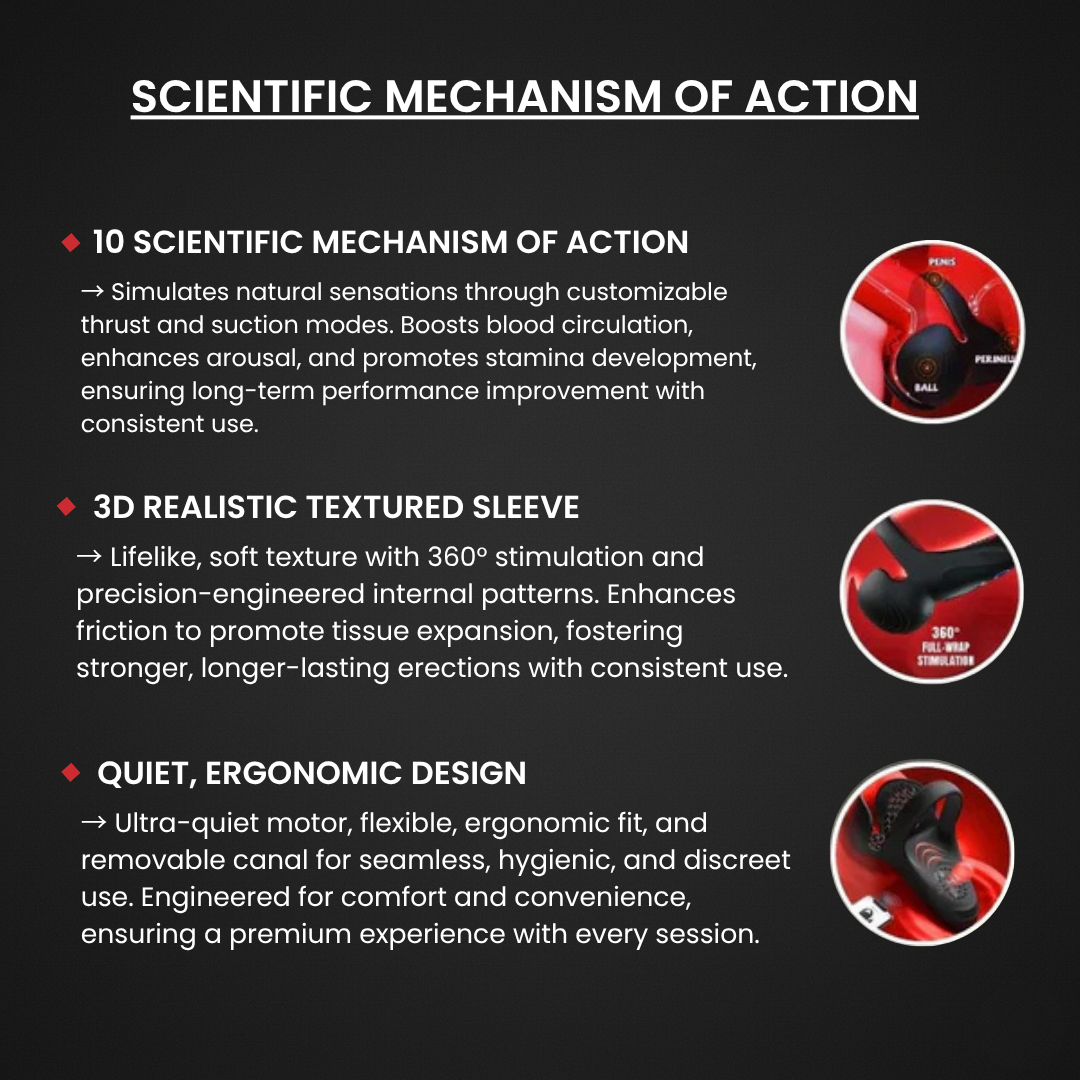The TitanPulse™ actively conditions vascular tissue, stimulates capillary growth, and promotes stronger, more reliable function over time. It is precisely engineered to amplify your body’s inherent response and drive measurable improvements in size, endurance, and overall control.
